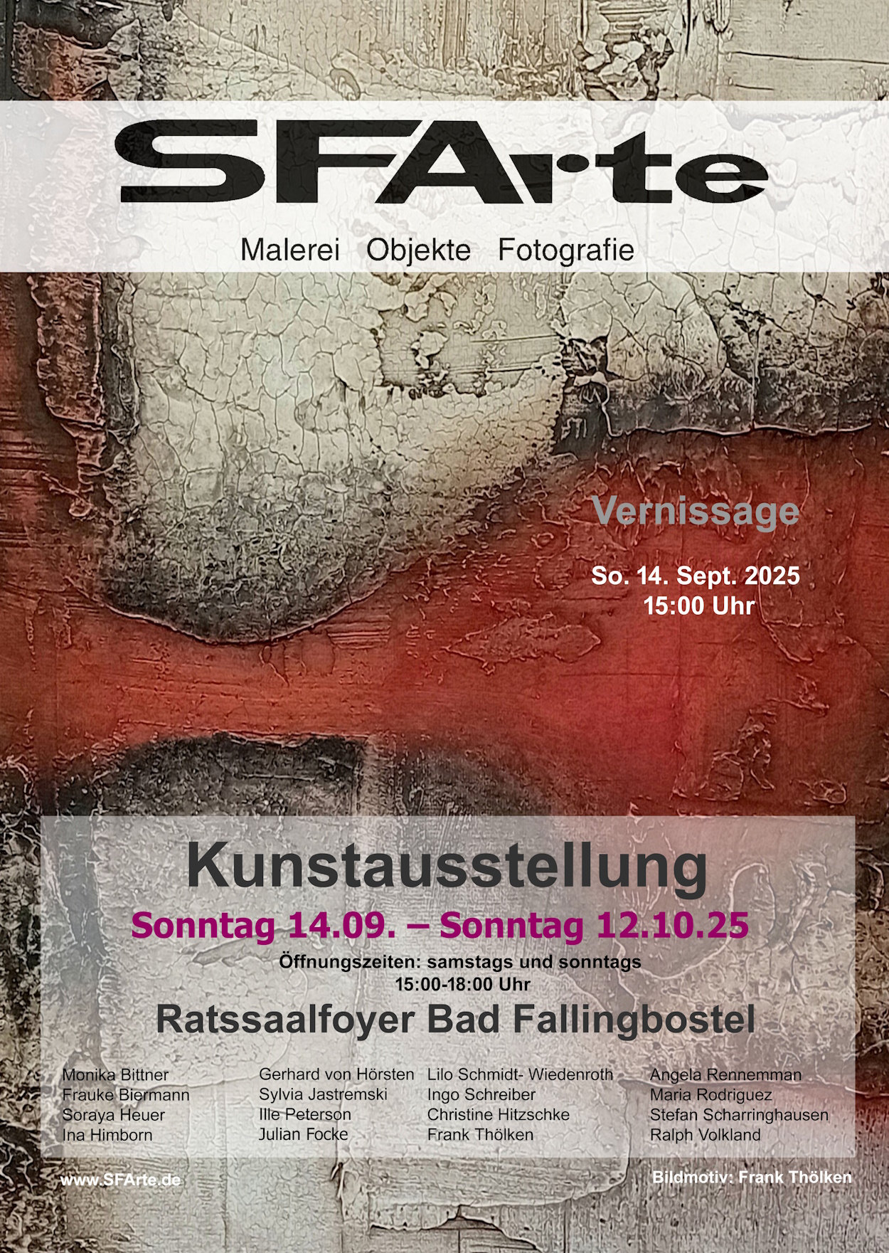 In diesem Jahr haben sich 16 kreative mit ihren einzigartigen Werken beteiligt, darunter, Fotografien, Objekte, Collagen und Malereien. Die Kunstwerke sind vom 14. September bis zum 12.Oktober presäntiert worden. Wir haben uns vorgenommen, mit unseren SFArte Ausstellung die Grenzen zwischen Malerei, Fotografie, Poesie zu verwischen. Nun, da sie zu Ende geht, blicken wir auf eine Ereignisreiche Zeit zurück.